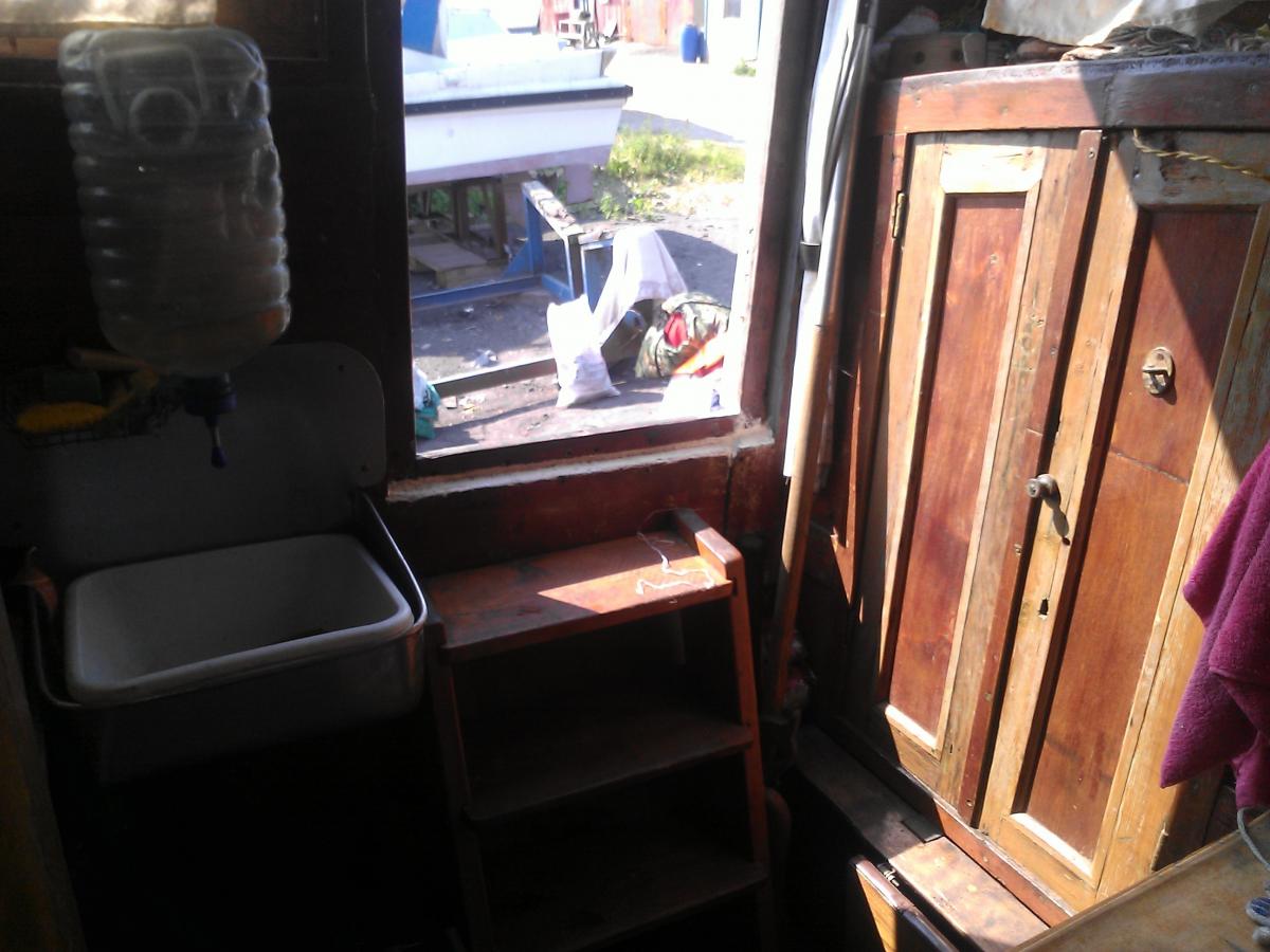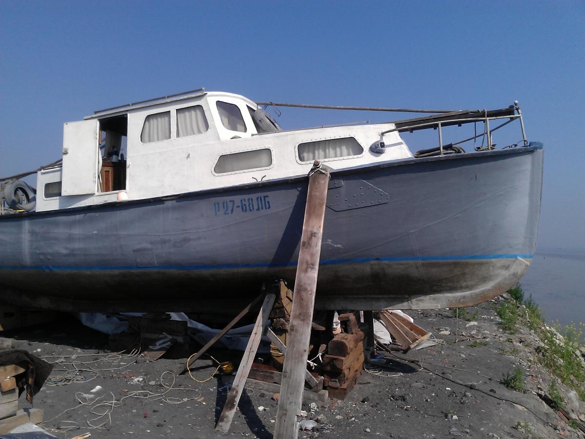Корпус деревянный , в 1994 году обклеен стекловолокном . Демонтирован редуктор , новый прилагается .