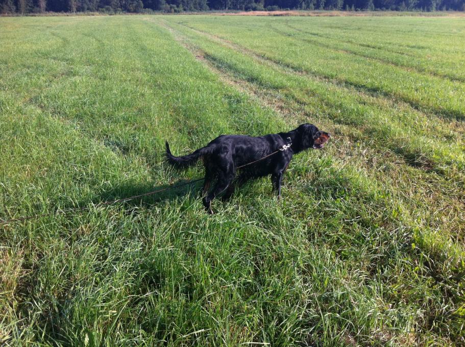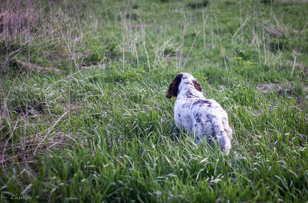 Все про все заняло полчаса вместе с отдыхом. Но на пути к машине (Гай на поводке) мы волею случая прошли прямо по тому месту, куда сел перемещенный, и... вытоптали его. А работа номер 3 была, получается, по другой птице. Причем после подводки перемещенный остался за спиной и за ветром, а я на следующий пуск пустил собаку прямо от места подъема. Вот так, оказывается, тоже бывает.