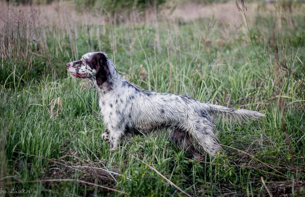 Первая работа - мне показалось, что стойка неуверенная, я решил "подвинуть" собаку свистком. Подвинул