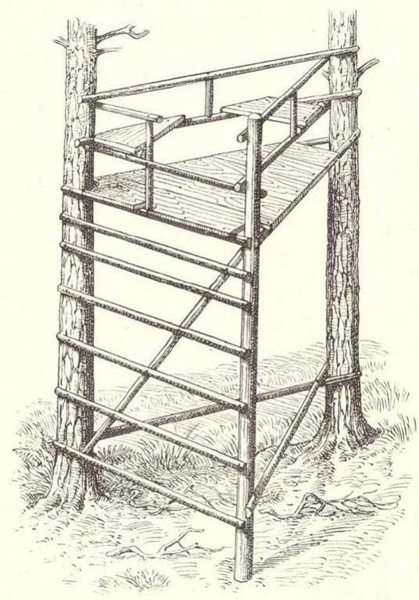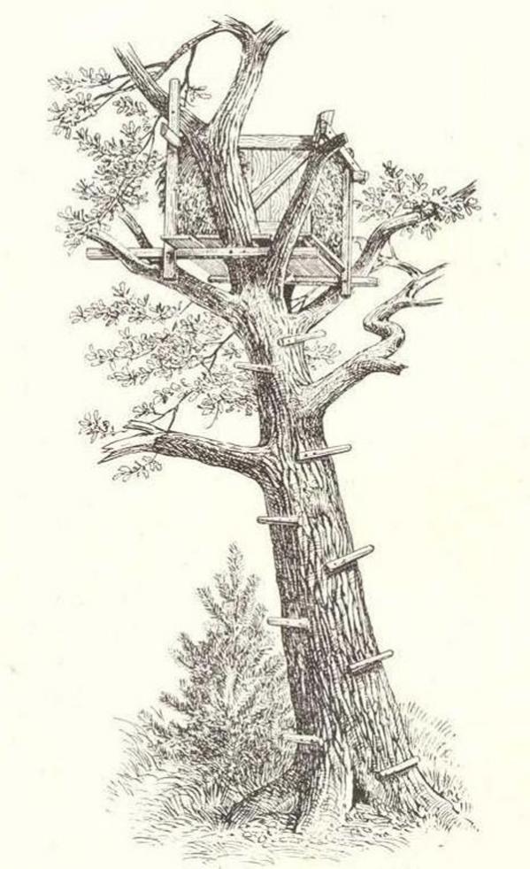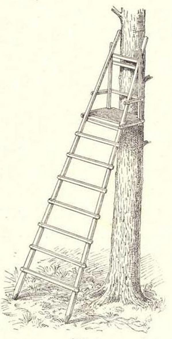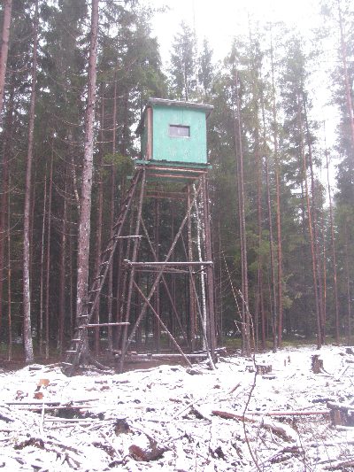 У нас стараются лабаз сделать как можно выше, метров 10-15 на такой высоте курить даже спокойно можно, зверь нифига не чует, обычно на сырорастущих деревьях. Ну и крыша обязательно, а то сидеть-мокнуть не в кайф.