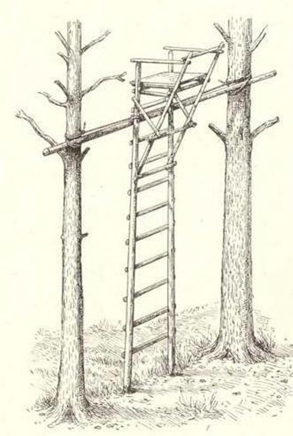 Высота постройки должна быть 5-6 метров. Было бы здорово если на лабазе можно было-бы разместиться вдвоем.