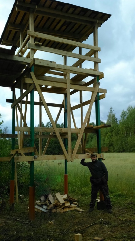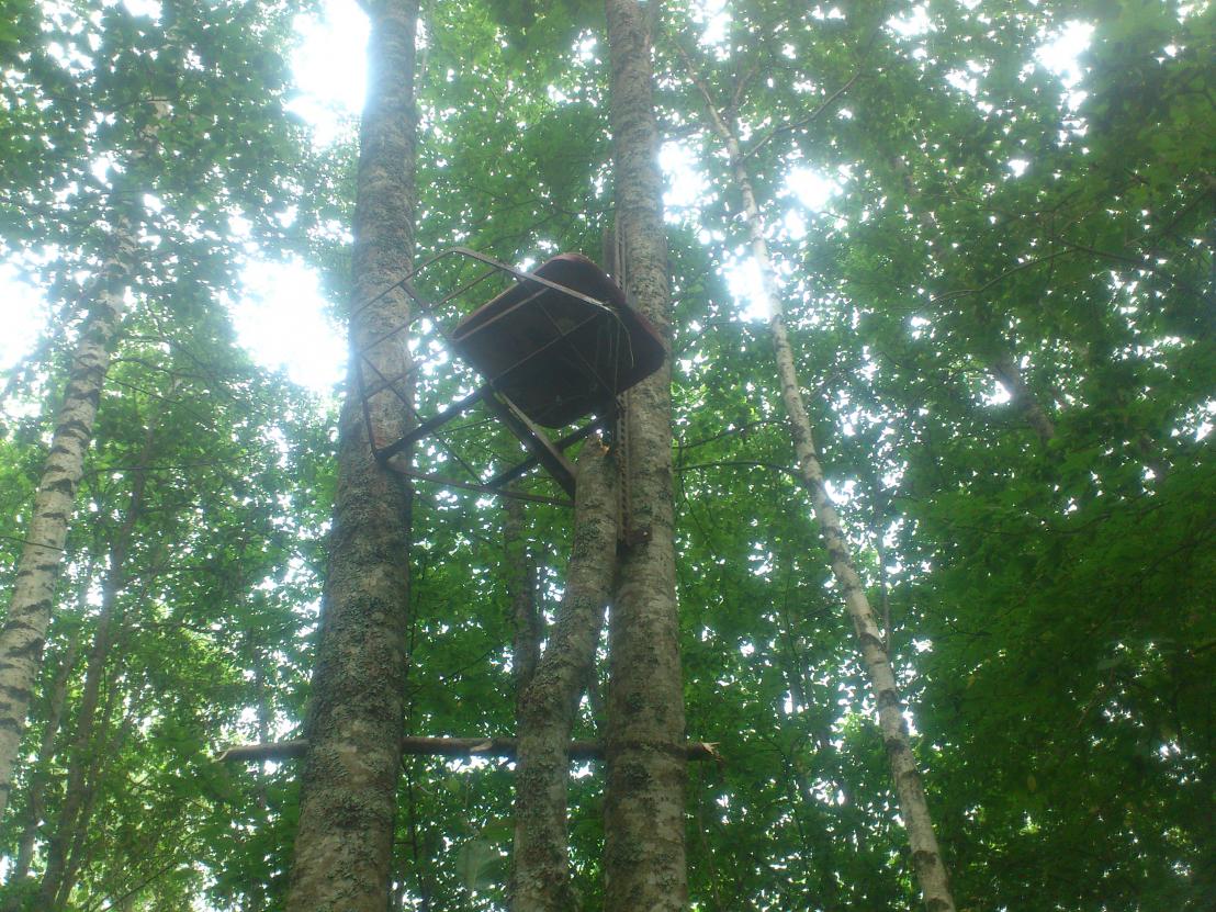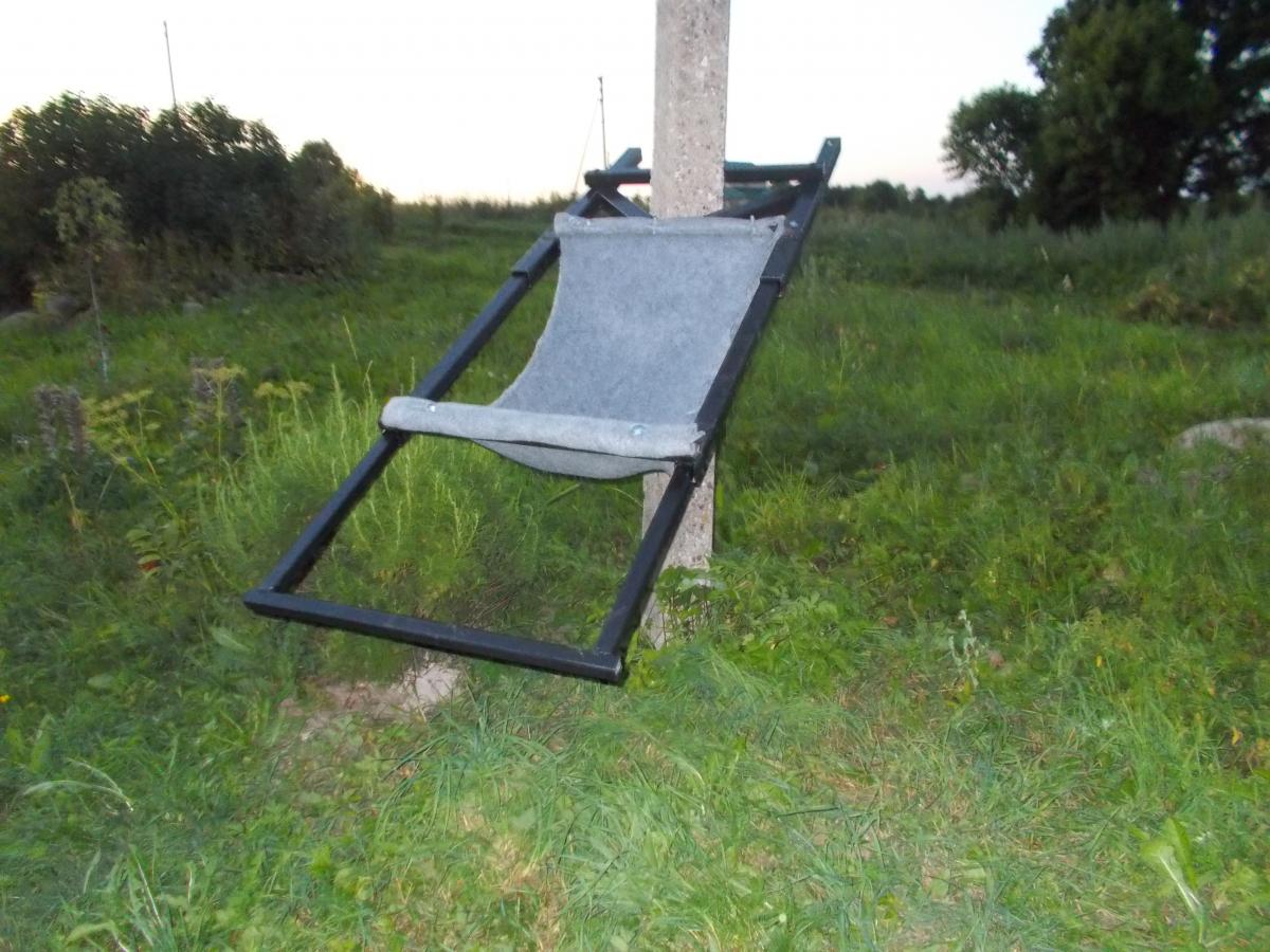 Вот такой лабаз- самолаз, был изготовлен мной за один день! Уже опробован, 4-5 часов сидишь без проблем! Очень удобная штука, залезаешь на любое дерево диаметром не шире 60 см. Единственная проблема- суки приходится подрубать. В течении 5-10 мин, все решаемо! Лично метров на семь поднимался без проблем. Рекомендую очень удобно!