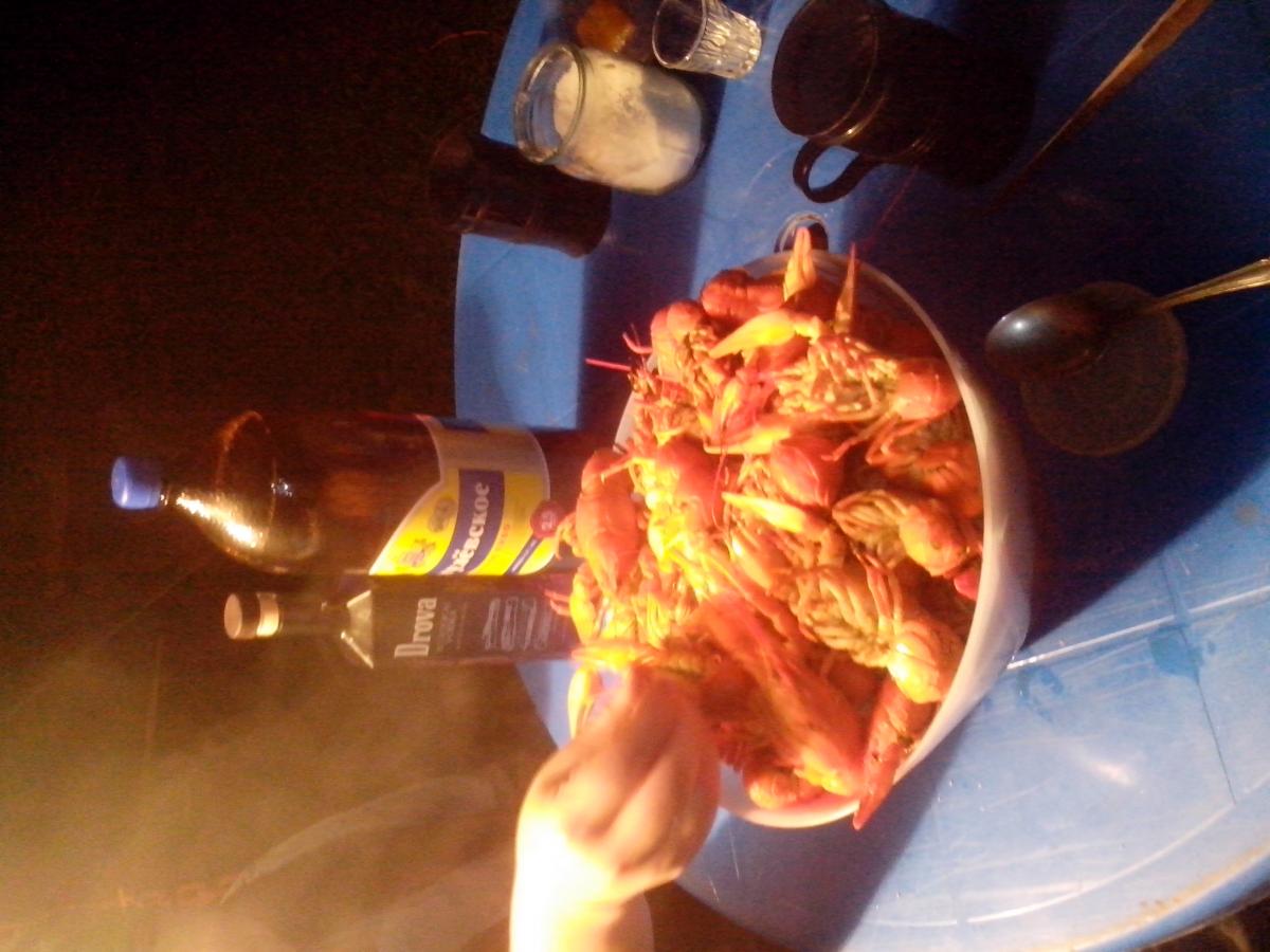 Сменили наживку на новых подлещиков в этих двух раколовках и поставили еще одну. Днем проверили. В одной один рак, вторая битком забита, а в третьей шесть штук.