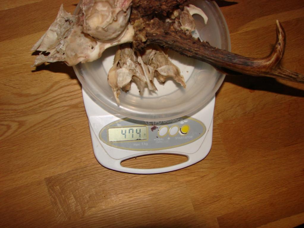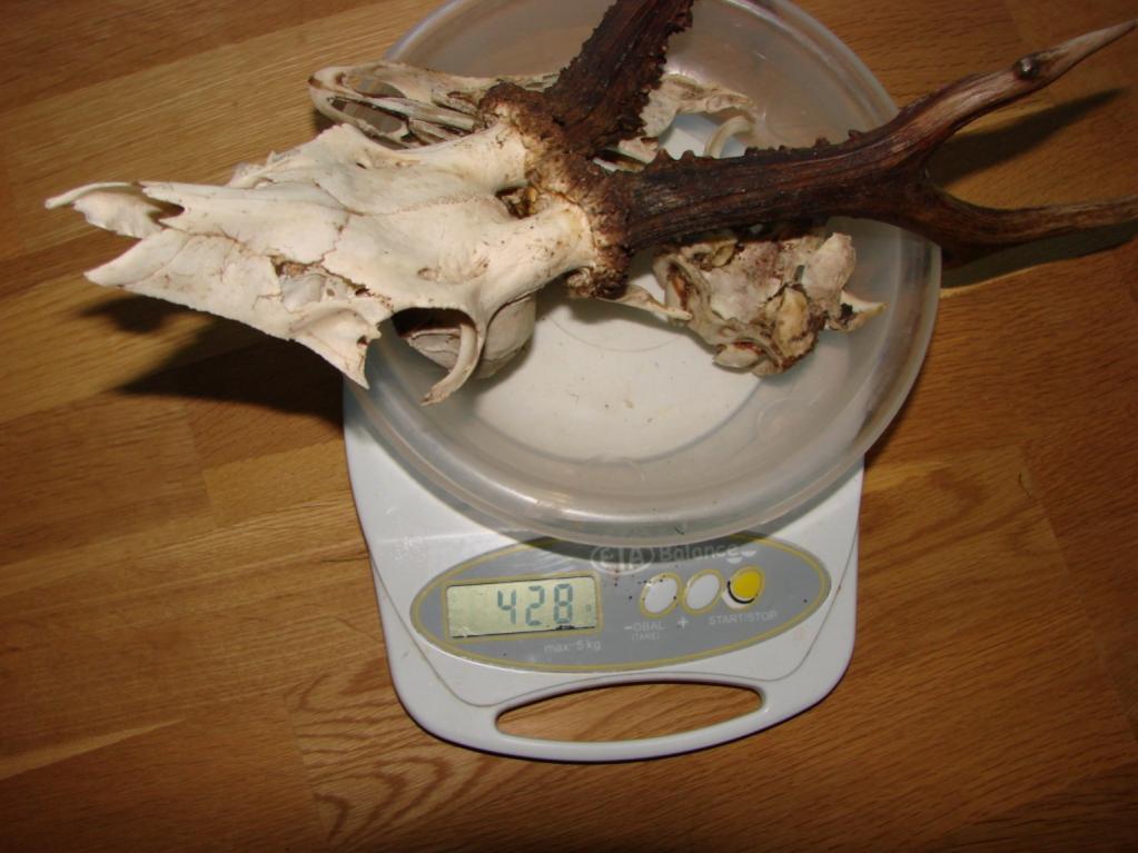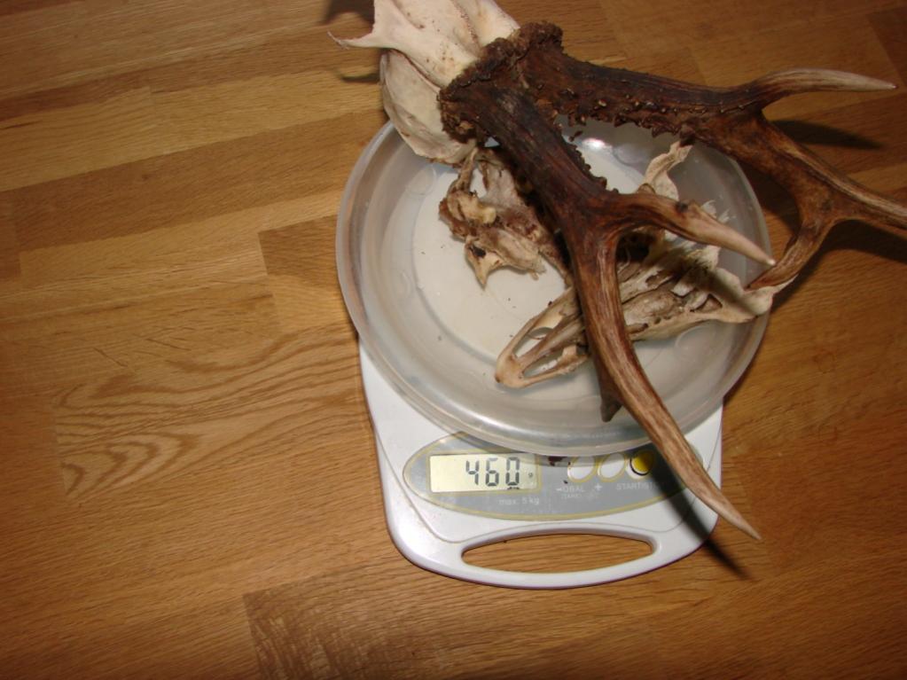 И так берём козлика, не огромного, почти «медалиста» вписывающегося в категорию «от 400 до 499 г». То есть каждый ошибочный грамм рогов стоит 6 евриков.