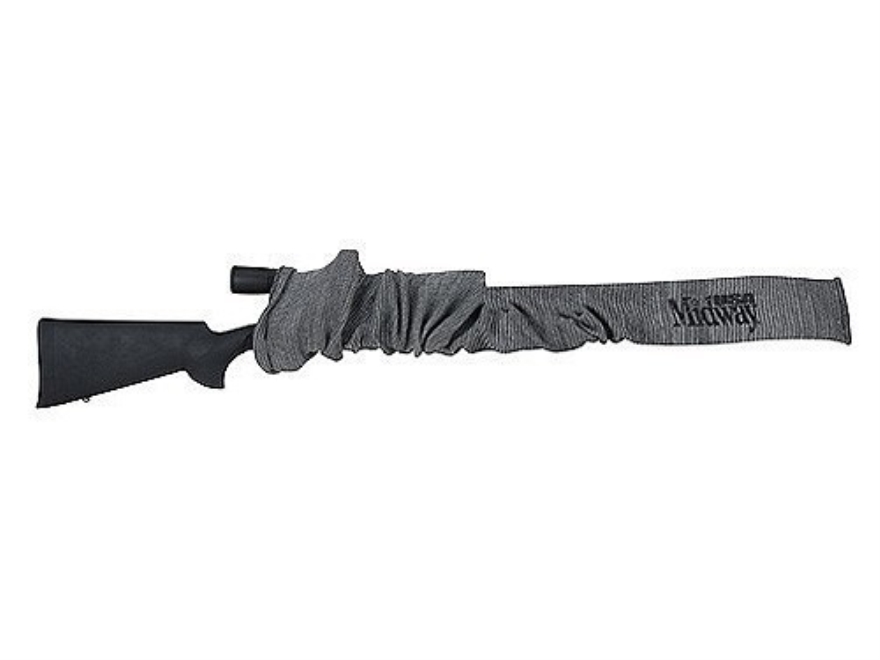 Чехол-носок для ружья из синтетического материала (смесь силикона и полиэстра). Цвет серый с чёрным логотипом. Длина 132,08 см (MidwayUSA Gun Sock Rifle Silicone-Treated Polyester Blend Gray with Black Logo 52"). Цена 489руб.