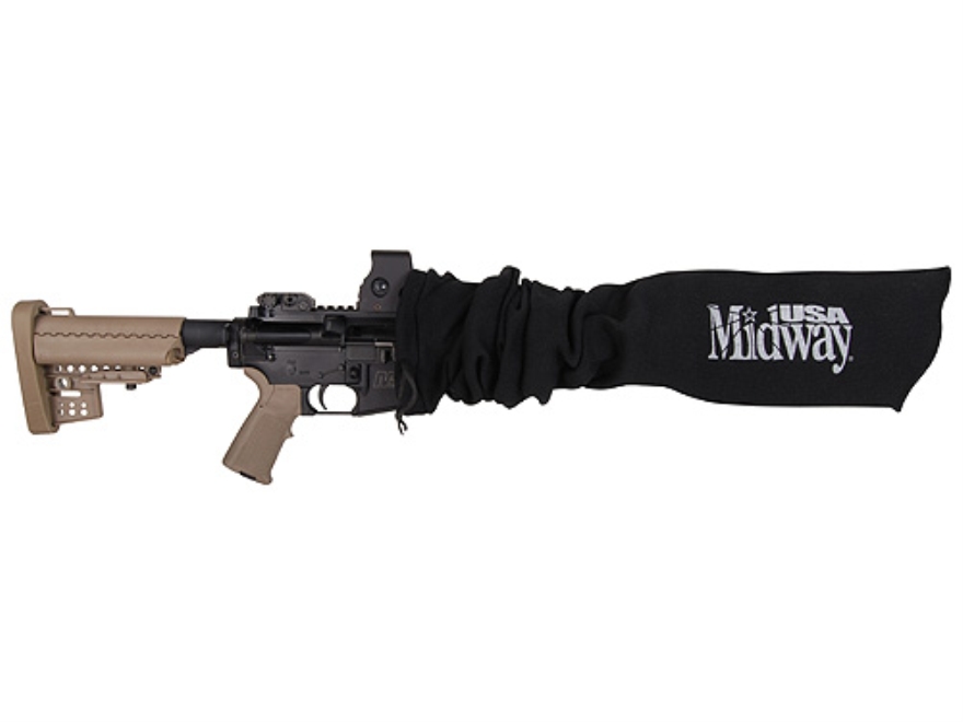 Чехол-носок для полуавтоматического оружия из синтетического материала (смесь силикона и полиэстра). Цвет чёрный с серым логотипом. Длина 119,38 см (MidwayUSA Tactical Gun Sock Rifle Silicone-Treated Polyester Blend Black with Gray Logo 47"). Цена 780 руб.