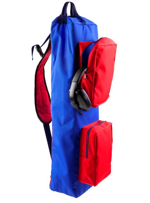 Сумка-рюкзак специально изготовлена в такой цветовой гамме, что бы не вызывать ассоциаций с оружием. Внутри находятся карманы для магазинов, а размер наружных карманов специально рассчитан под стрелковые наушники.