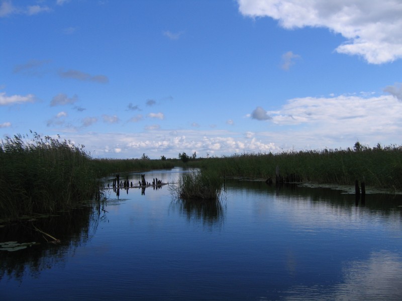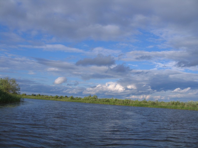 Река отлично подходящая для продвижения под мотором,хотя встречаются препятствия, вбитые в дно колья поперёк реки, предположительно остатки рыбацких сооружений для установки мерёж.