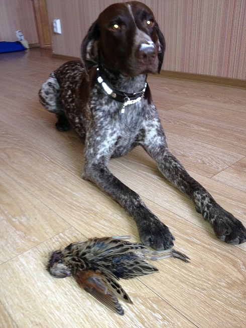 ну и наконец сегодня, вырвались на часок перед работой, и вот добыча - парочка великолепных перепелов!