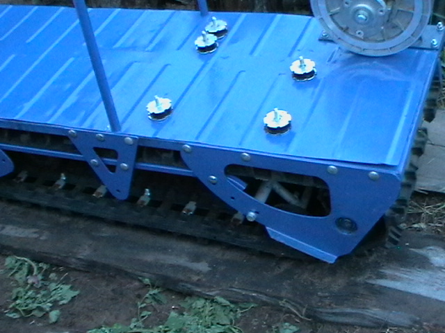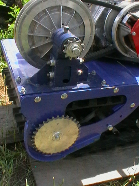 Тележку катков спереди опустил на сантим, и отодвинул назад на сантим. А сзади наоборот приподнял на сантим также отодвинув назад на тот же сантим. То есть перед приподнялся, а зад соответственно опустился. Сделал новый вал который был спереди.Тот что стоял на 20мм, я сделал на 25, и чтобы не подрезать его для стопорных колец, сделал втулки чтобы исключить смещение роликов.Приварил защиту звёздочки. Позже сфотаю возможно, но на первом фото её хорошо видно.