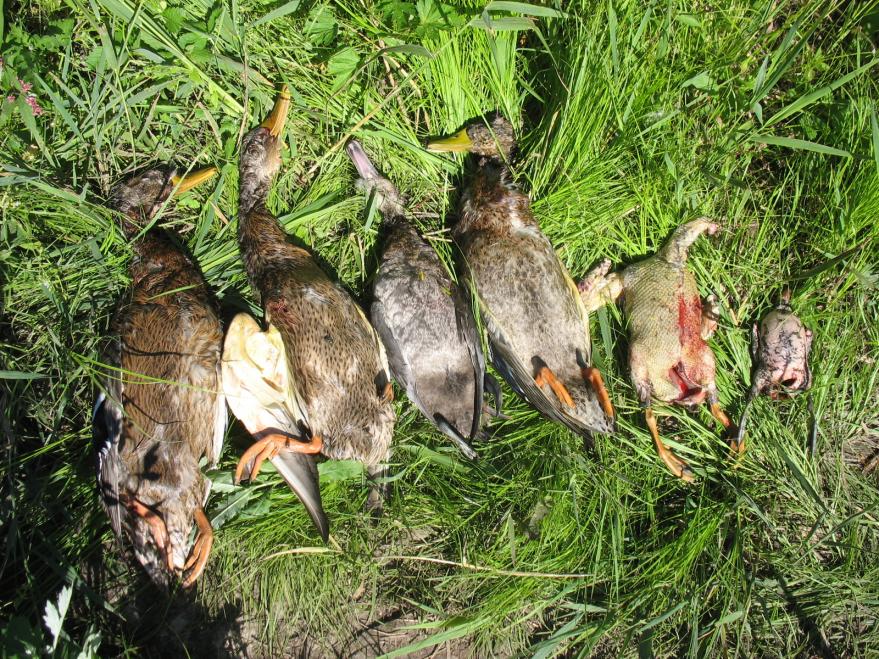 [FONT=Verdana, Arial][FONT=Verdana, Arial]На обратной дороге решили заглянуть еще в одно перспективное местечко, на удивление сразу же из под берега, из под ног, стали взлетать кряковые, плюс еще нырков погоняли, правда пришлось раздеваться и вплавь подбирать добычу, благо жара и искупаться потом вообще всем захотелось. Вот так и получилось что в попутном местечке взяли за полчаса больше, чем на утрянке, хотя конечно, по колличеству несравнимо, сколько же на утрянке там утки сидело, летало, глаза разбегались, но глубина где находилась основная масса не позволяла стрелять все это, без возможности подобрать, поэтому под конец только нашли нужные точки, но лет к тому времени закончился. Тем не менее общий результат утра получился вполне нормальный, там немного, здесь немного и уже кое что.[/FONT][/FONT]