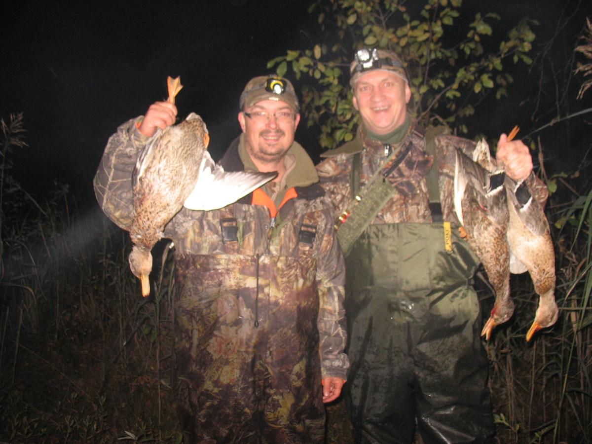 Все приезжающие охотники выбирали исключительно вечерки, как более простые варианты, без танцев с бубнами, типа вставать среди ночи, толком даже не успев глаза сомкнуть придя с вечерки и переть сначала лодки черти куда, потом расставлять чучела, расставляться по краям окон, на колышащемся под ногами плавучем слое и маскируясь так что б с метра сами себя не видели, иначе все усилия по светлому напрасны будут... а потом все это в обратном порядке только еще лодки мыть и сушить. Вобщем всю неделю были вечерки, вечерки и еще раз вечерки, ходить не близко, зато и ничего особенного и не нужно, разьве что подствольник все же очень желателен порой.