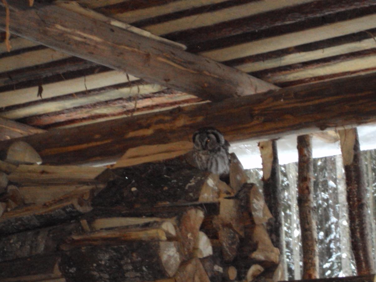 вот такая глазастенькая жила у нас в дровнике целый месяц. Когда брали дрова, она не улетала. Правда старались двигаться медленно, без резких движений и не шуметь.