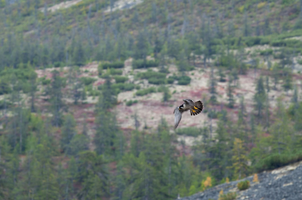 Да и этот красавчик ,сначала подлетел метров на 20 ,сел в ёлках и слушал ,три песни минимум , потом так и не поняв ,начал подлетать .