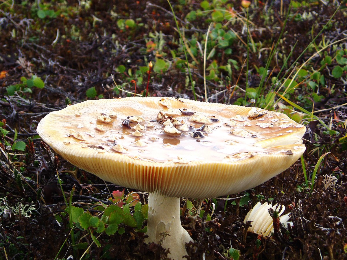А что это за волчок зелёноватый под грибом, должно быть, в засаде сидит (налево смотрит)?