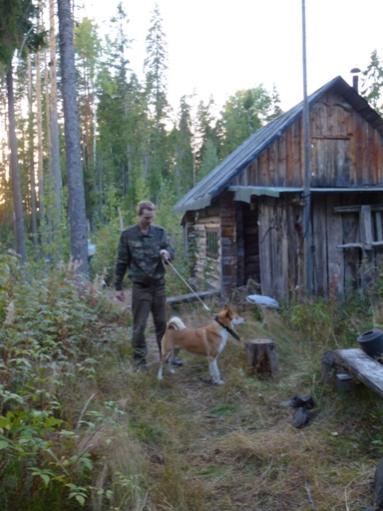 Подхватил безлошадного Костю с ЗСЛ на Мурманке и к 17-00 субботы вечера прибыли на место. Машину оставил на стоянке у деревни. Андрей с экпертом на L-200 вслед за егерем Виктором на Хантере доставили нас к заимке ещё через час. Разместились отлично. Вечером испытали карелку стажера, но без дичи и без оценки. Потом ужин, по 100 гр. и жеребъёвка.
