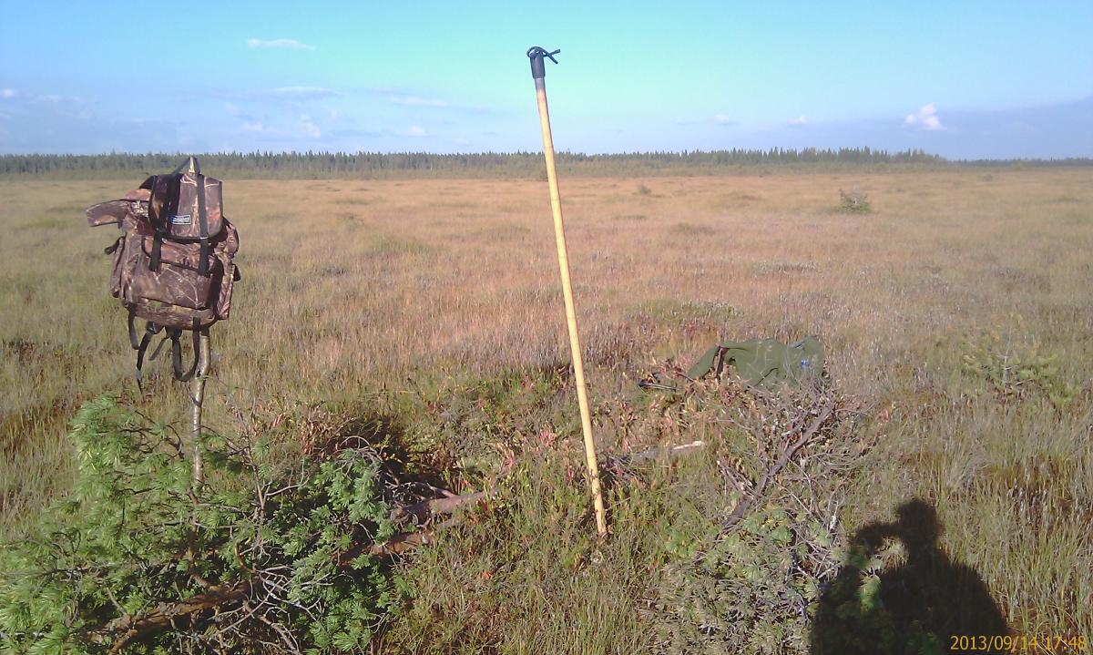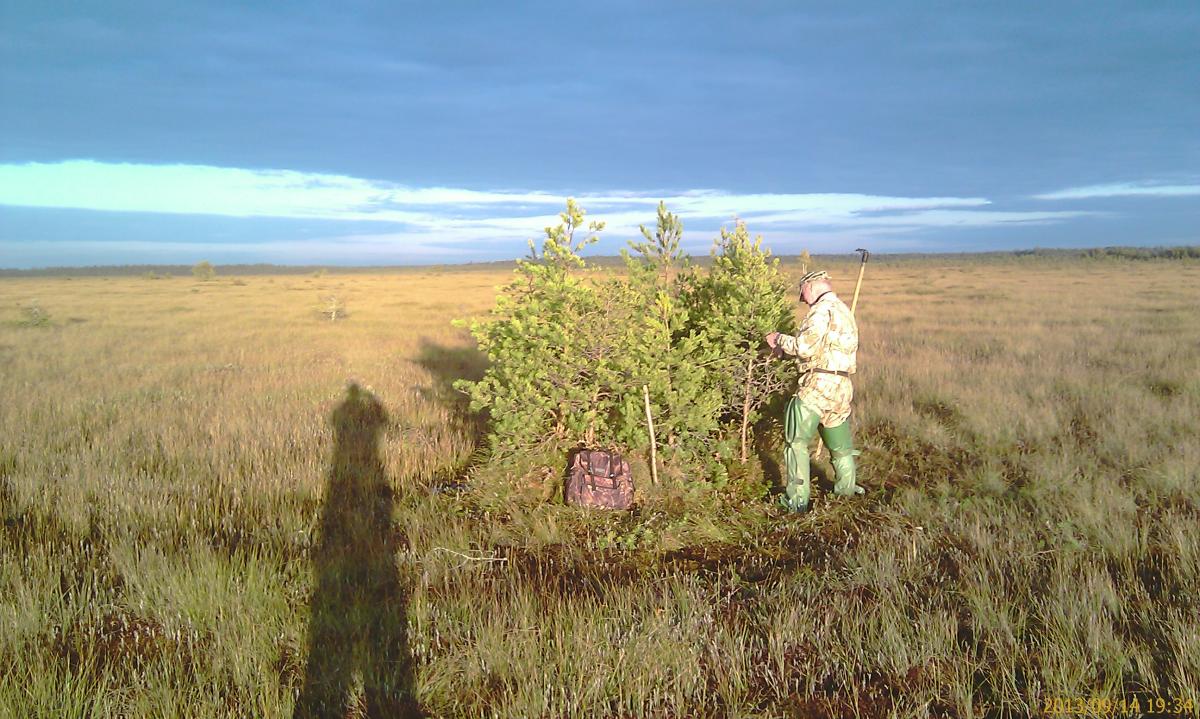 Вот у озерца к вечеру и надо ждать гуся. А днём можно клюкву собирать. Всё равно ягодники не дадут спокойно охотится.