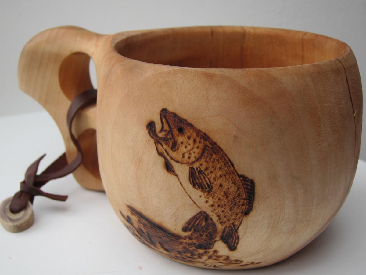 Это уже моя третья Кукса. Одну я отдал отдал товарищу, два года назад на сплаве он у меня её выпросил, вторую потерял на загонной в прошлом году... В этом году долго выбирал - надо было найти хорошую, но чтобы как-то она выгодно отличалась от остальных, была качественная. Выбирал- выбирал, да так и не выбрал. Пока не попалась мне в руки та самая, что теперь почти всегда со мной на любой охоте. Мужики удивляются: "Зачем ты её с собой таскаешь?". "Чай пью!",- отвечаю я. Всегда чтобы можно было чайку из своей кружки испить. Кукса- что это? Да догадались, наверное! Это кружка. Кружка из Карельской берёзы