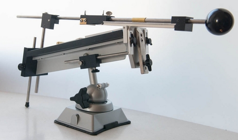 Интересует больше сама заточка инструмента. Больше нравятся мне станки более серьезные, не из пластмассы. Апекс может хорошо чисто для себя, но не более. Он хлипкий (про китайский клон вообще молчу), но функцию свою выполняет. На нем не работал, но нож не имеет абсолютной фиксации клинка, надо переворачивать лезвие. Себе сделал точилку по другому принципу. Она надежная, с поворотным механизмом и двумя фиксаторами лезвия. Бруски стандартные как на Апекс Про, но можно устанавливать и другие бруски, которые без алюминиевых бланков. Точнее крепление более универсальное. С одной стороны паз ,,ласточкин хвост,, а с другой ,,г образный,,. Прикупил для заточки готовые бруски 240, 400, 600, 100 грит. Есть бруски из цельноспеченного алмаза 40/28 7/5.