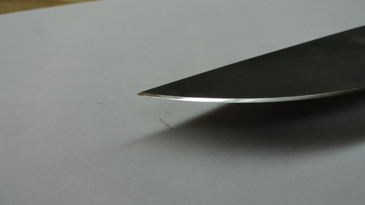 Надо было мне сразу ответить Сергею. Может постеснялся или забыл. Фотография ножа была одного из первых. От заточки ножей не фанатею, но все же для первых шагов было не плохо. Сейчас заточкой ножей не занимаюсь, напарник трудится. Фото сделаны в 2014 году в мае. Фото до заточки.