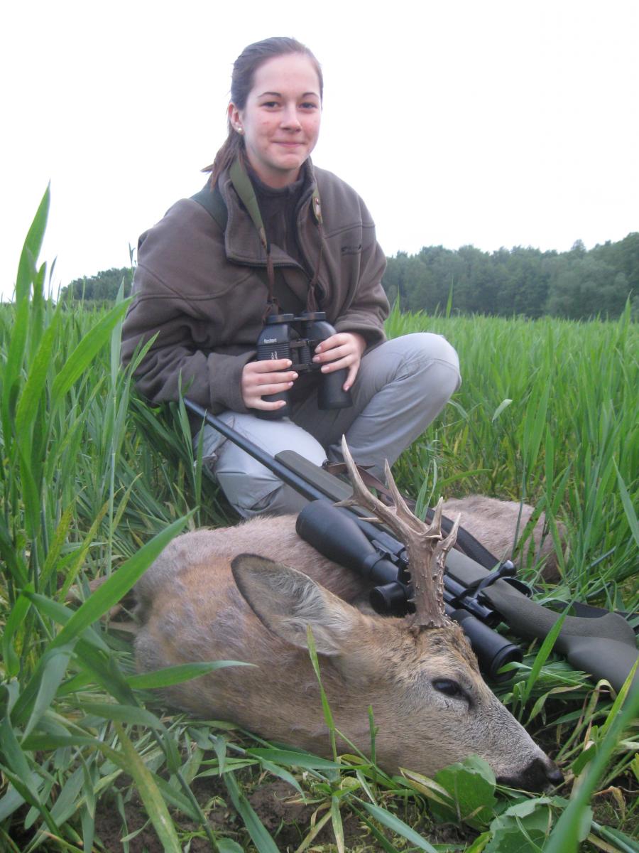 Xодим лево, право. Ничто. Cмотрю на лабаз - пробую установить направление выстрела. Cнова ничто. Внезапно - тридцать метров впереди - я вижу "ложки" косули. Бинокль.... лежит коза и внимательно за нами наблюдает. Показал дочери. Медленно приближаем…..