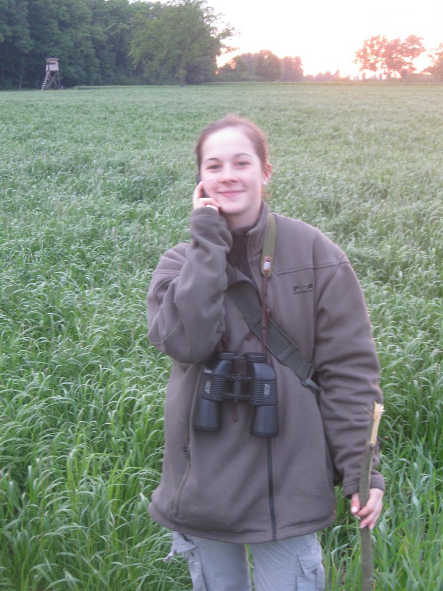 - Гггиияорррр, гииияоррр!! - из-за нашей спины, над лесом, раздалось журавлиное курлыканье. Не длинную мгновение позже два огромные птицы пролетели рядом нас - неполных 20 метров - и приземлились на посеве кукурузы. Оливkа была под большим впечатлением - еще никогда не видела журавлей так близко. Бросила подсматривание заячьей любви и наблюдала за достойными птицами.