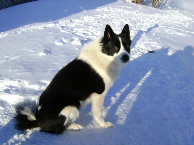 Русско-европейская лайка по кличке Бусинка.