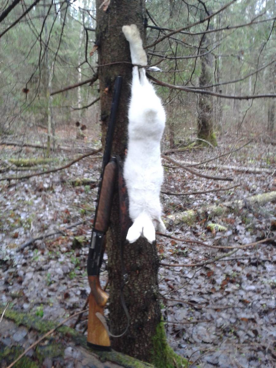 Снега нет, зайцы белые, бояться собственной тени, поэтому и не убежал далеко.