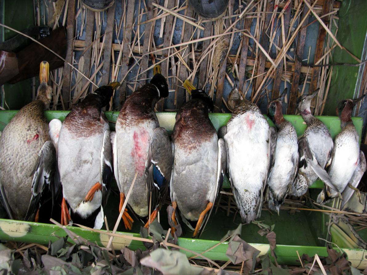 Обедаем. Делимся впечатлениями. Старший определяется, что необходимо сделать еще одну загонку. Разбрасываемся, чешим клин камыша. Странно, место перспективное и даже фазанчика нет. Впереди скошенный подсолнух полностью усеян густым колючим растением, по которому и идти трудно. Поле уходит вверх, за линию горизонта. Усталость и жара берет своё, в глазах каждого читается: «может, хватит?», но никто так и не решился возразить Старшему. Растягиваемся и вперед. Идти тяжело, да и еще и снизу вверх. Верхнюю одежда, ровно как и головные уборы многие поснимали, пар идет. Неожиданно, справа вверху звучат выстрелы, по кому тут можно стрелять-то, лиса, коза? Так на последнюю лицензии нет… Серия выстрелов набирает обороты, по звукам разрядился не один п/а. Всматриваюсь в горизонт, вроде коза, да не могли ребята нарушить. «Коза» движется в моем направлении, курсом чуть левее. Ломаю глаза, ёпта, да это же ВОЛК. Колючки на поле доходили местами до пояса, тело зверя не вижу, только шея и голова. После очередной серии выстрелов, зверь меняет курс и идет прямиком мне в лоб. Пока я рассматривал, по кому вели стрельбу, тело автоматически приняло позу почти горизонтального положения, одна голова вертелась поверх растительности. Только потом, когда расстояние между мной и зверем стало резко сокращаться, мелькнула мысль, в магазине патроны с дробью №1,2,0 и только последний 4/0. Надо сказать, что зверь показался не меньше теленка. Отсюда и борьба мыслей в голове, что делать, даже на средней дистанции я ему ничего не сделаю. Пока думал, гадал, несколько секунд и зверь вот он, расстояние двадцать метров. Поднимаюсь во весь рост, выстрел в лоб, зверь опешил от такого расклада, споткнулся, меняя траекторию, подставляет бок, второй выстрел, третий, четвертый, пятый почти в угон, под острым углом. После каждого из выстрелов, зверь всё тяжелее, но движется, от последнего, почти стелясь, но уходит в сторону посадки. И тут боковым замечаю за ним следом, но еще ближе ко мне, идет еще один. Как так, я его и не видел. Сразу и не сообразил, а он то, в половину меньше от того, по которому я разрядил магазин своей бенички и его в траве можно разглядеть не дальше пятидесяти метров. Еще и магазин пустой. От досады, того, что мой, большой ВОЛК уходит, чуть не поплыл. Но бежать сразу за ним, духу не хватило. На 100% уверен, что три из пяти, выстрелов достигли цели и зверь ляжет, рано или поздно, но ляжет. Результат стрельбы мелкой дроби. Тем временем коллеги не останавливались и выстрелы с их стороны реже, но звучали. Вижу, подранок закрутился уже на соседнем поле. Доберут. А мой, то ушел… Подбегает Старший, что, где, как? Втроем возвращаемся по уходящему следу моего волка. Поиски не дают результат, закралась мысль может промазал, Старший смотрит с подобного рода вопросом, но молчит. Работаю на опережение, уверенно отрезаю – 100% попадание трех выстрелов. Старший верит. Принимает решение возвращаться к основному коллективу. Проходим через поле, прочёсывая попутно. Пусто. Подходим, к скоплению охотников, лежит волк. Приятно и обидно. Но это не тот подранок, который крутился на поле! Этот взят в загоне. Сколько же их было? Суть, да дело, звонок - подранка добрали. Отлично. А настроение, то никуда не годное. Два абсолютно одинаковых зверя, как определили старейшины коллектива, переярки. Красивые трофеи. По скромным под