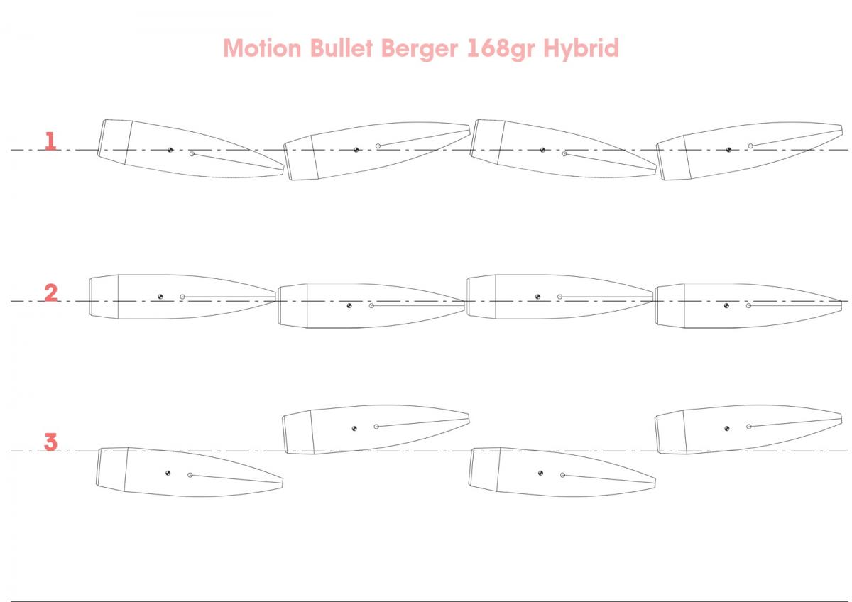 Господа, небольшой опрос, выберите правильный вариант(1,2,3) поведения пули относительно траектории. Точка в центре пули это центр тяжести(центр массы).