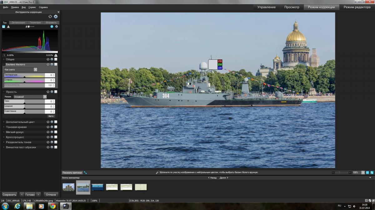 Ну так там есть баланс белого им и пользуйся. Справа сверху две пипетки, одна "баланс белого" вторая "эталон цвета".Я в камера рав обрабатываю,