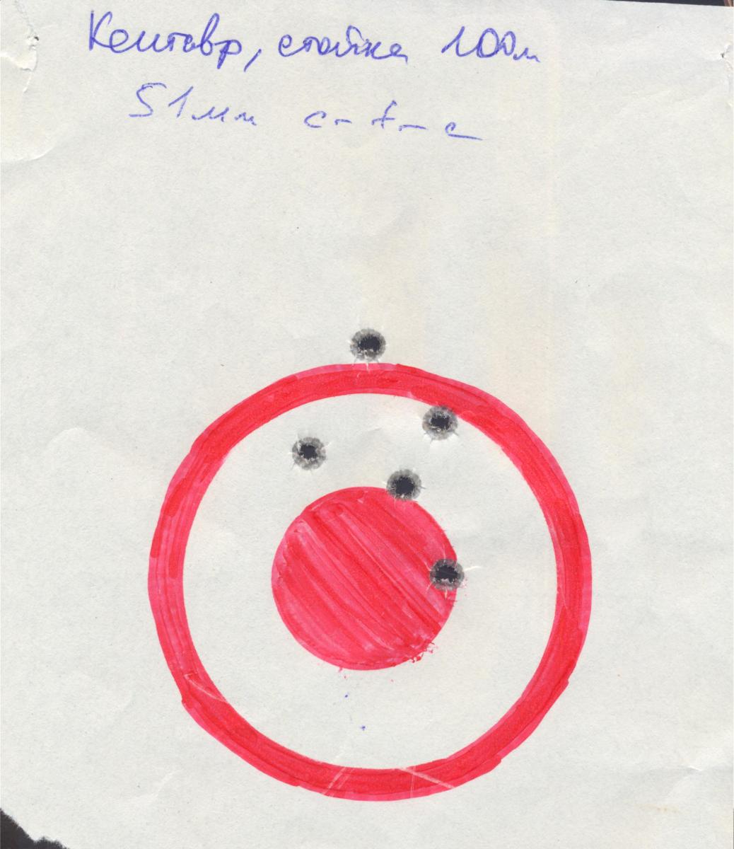 Просто проезжал мимо стрельбища и стрельнул по-быстрому. Первая пуля по центру не легла, поэтому все остальные стрелял в район первой.