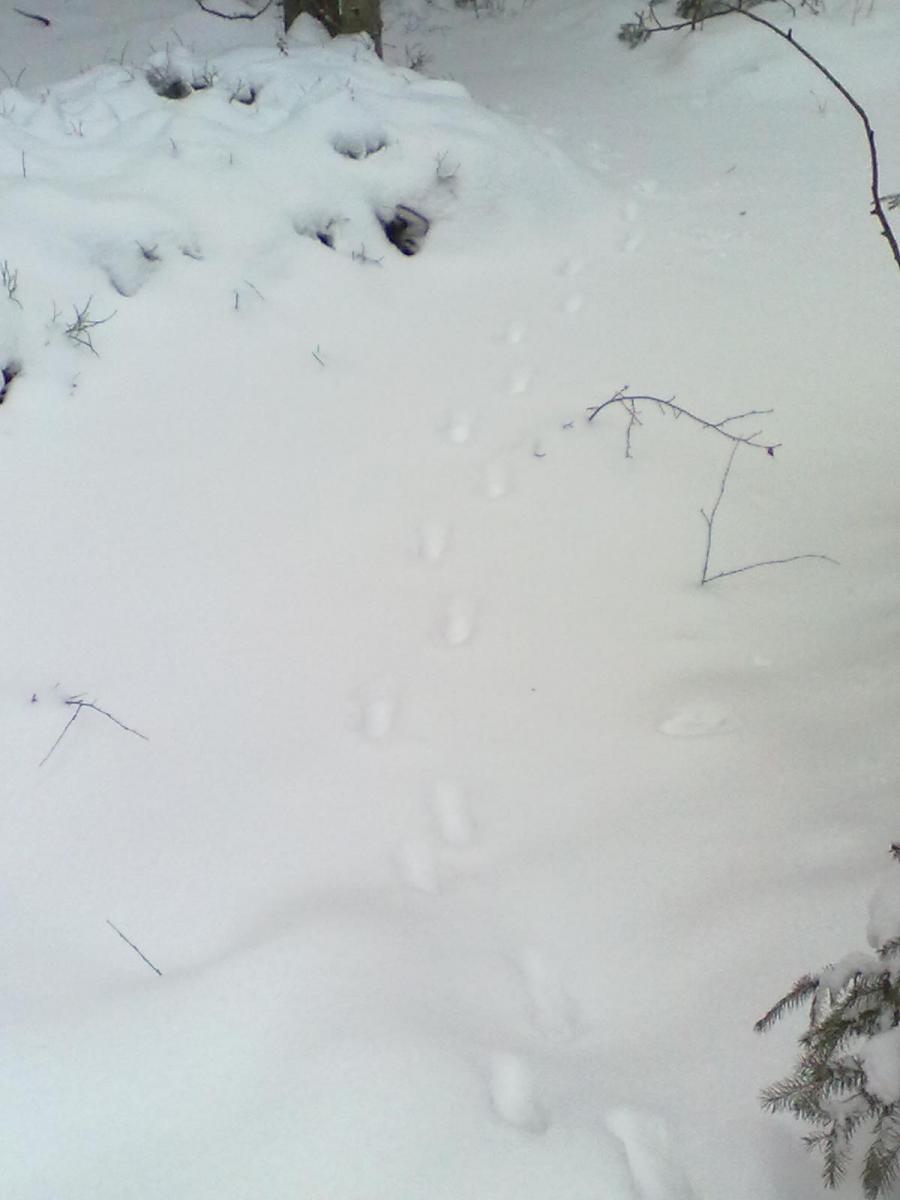 Фокс, у меня на фото сегодняшнего выезда в лес. Это следы куницы. Что за след у тебя на последней фото? Не могу разобрать по фото.Для куны широко ставит лапу и... Вспомни и сравни.