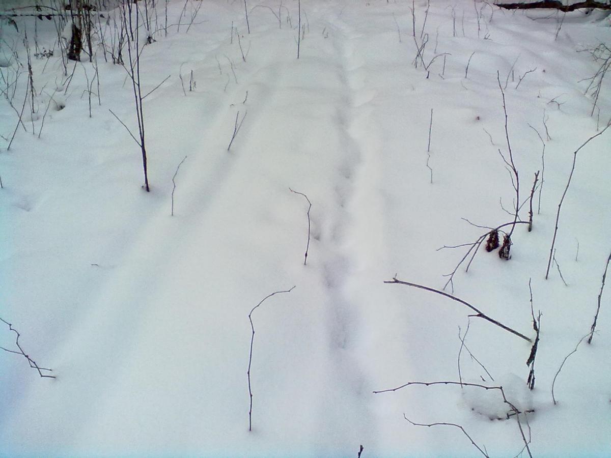 Снег не глубокий-7-10 см глубиной. Выволока-поволока присутствует. Цепочка не как по линейке, чуть чуть, но расходятся следы.