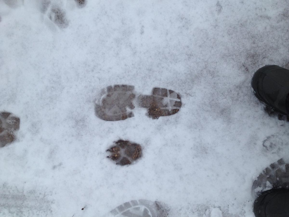 И еще- может быть так, что с возрастом лапа вытягивается? Т.е.тот, что постарше-имеет вытянутую лапу, а тот, что помоложе- более сбитую в комок? Судя по следам, они прошли по реке вместе, а там, где вчера шел я, разделились-один пошел по моему следу, другие параллельно в сотне метров.