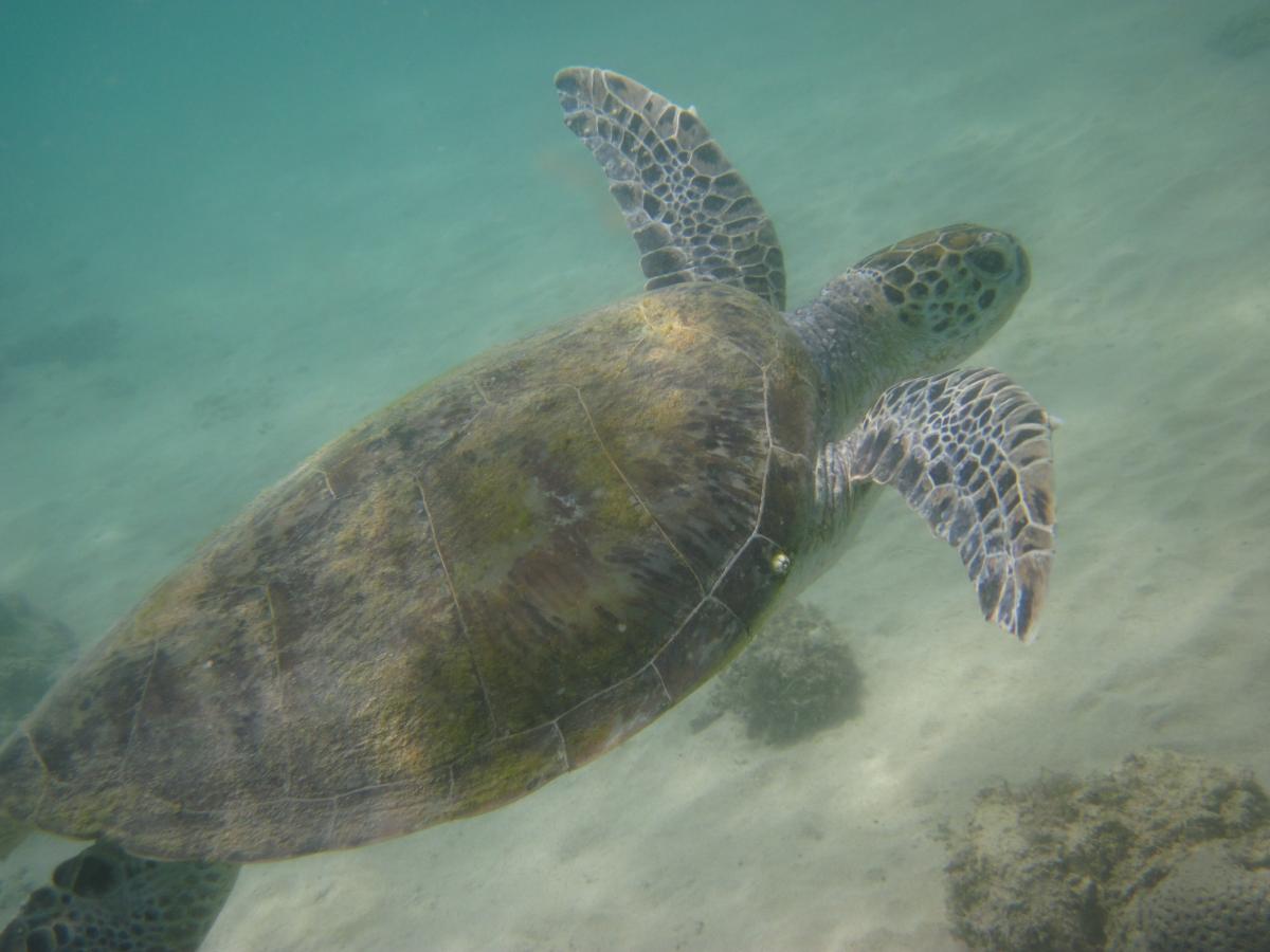 Да, собственно, отчета, как такового, и не будет, просто особо писать не о чем. Отличная погода, теплая и ласковая вода, нырял и плавал много. Но это не Красное море с его подводным и рыбным разнообразием. Прозрачность тоже не ахти какая: на заливе 3-4 метра, в Индийском океане побольше 5-6 метров. Но на океане был всего лишь один день. Там встретил много черепах, за день штук десять. Все разные как по цвету и величине, так и по характеру. Были пугливые, а были, которые позволяли себя погладить. Из рыб видел только рифовых. В пару километрах от берега есть акулий остров, но туда надо добираться на катере, потому как по пути очень сильное течение. Но катер надо бронировать заранее. У меня не получилось, может в другой раз. Посмотреть на акул было бы интересно!