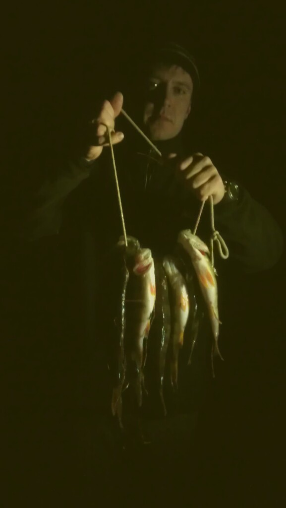 вчера в 9 вечера на берегу у машины ветерок был слабенький. на воде покачивало и поддувало, прозрак таял на глазах, морды лица мы всётаки опустили под воду. в итоге через 20 минум накочавшись на волнах,заработав морскую болезнь и почти блюя вышел на берег. на берегу команда соратников собиралась открывать сезон.грустны были их лица. зато костюмы одели. за время самой КуЁвОй охоты в этом году ,ни один рыб не пострадал разве что ослеплен фонарём.