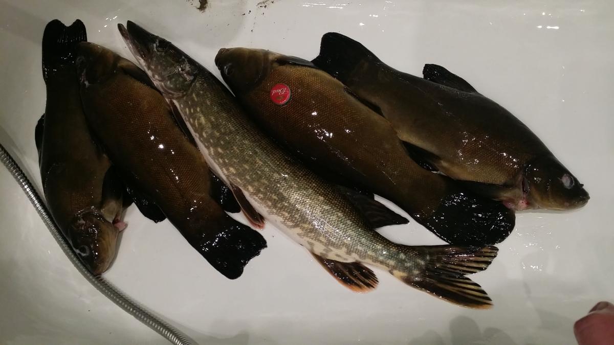 По итогу поездки мы все таки подстрелили по одной щучке примерно на килошку каждая.
