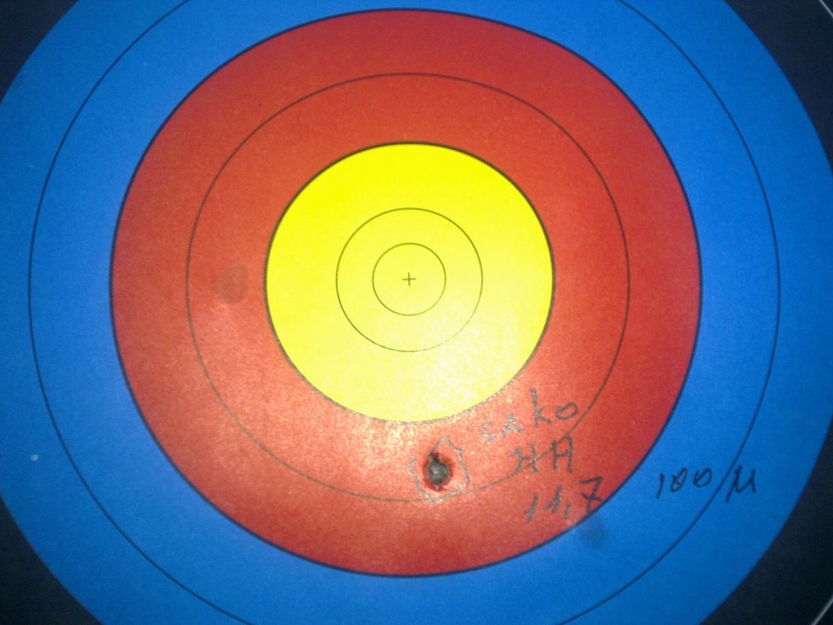 Всем коллегам доброго времени суток. Ну что сказать? Впечатления самые хорошие. Сегодня ездил на стрельбище. Погода дрянь. Взял мишеней и патронов и в путь. Стрелял по трем мишеням патронами Sako HAMMERHEAD 11,7гр., Federal American Eagle FMJ 150 Grains, и Fiochi FMJ 150 Grains, Фиочи стрельнул один раз на 200м. Стрелял лежа с рюкзака. Прицел открытый, Стрелял под круг мишени т.к. мушка, если брать по центру перекрывает. Короче - вроде не плохо. Поставлю прицел буду пытаться собирать минуты. Мишени - какие были в первом магазине. По приезду почистил, нагар был но немного, меди практически нет, после роблы патч вышел слегка голубоват.