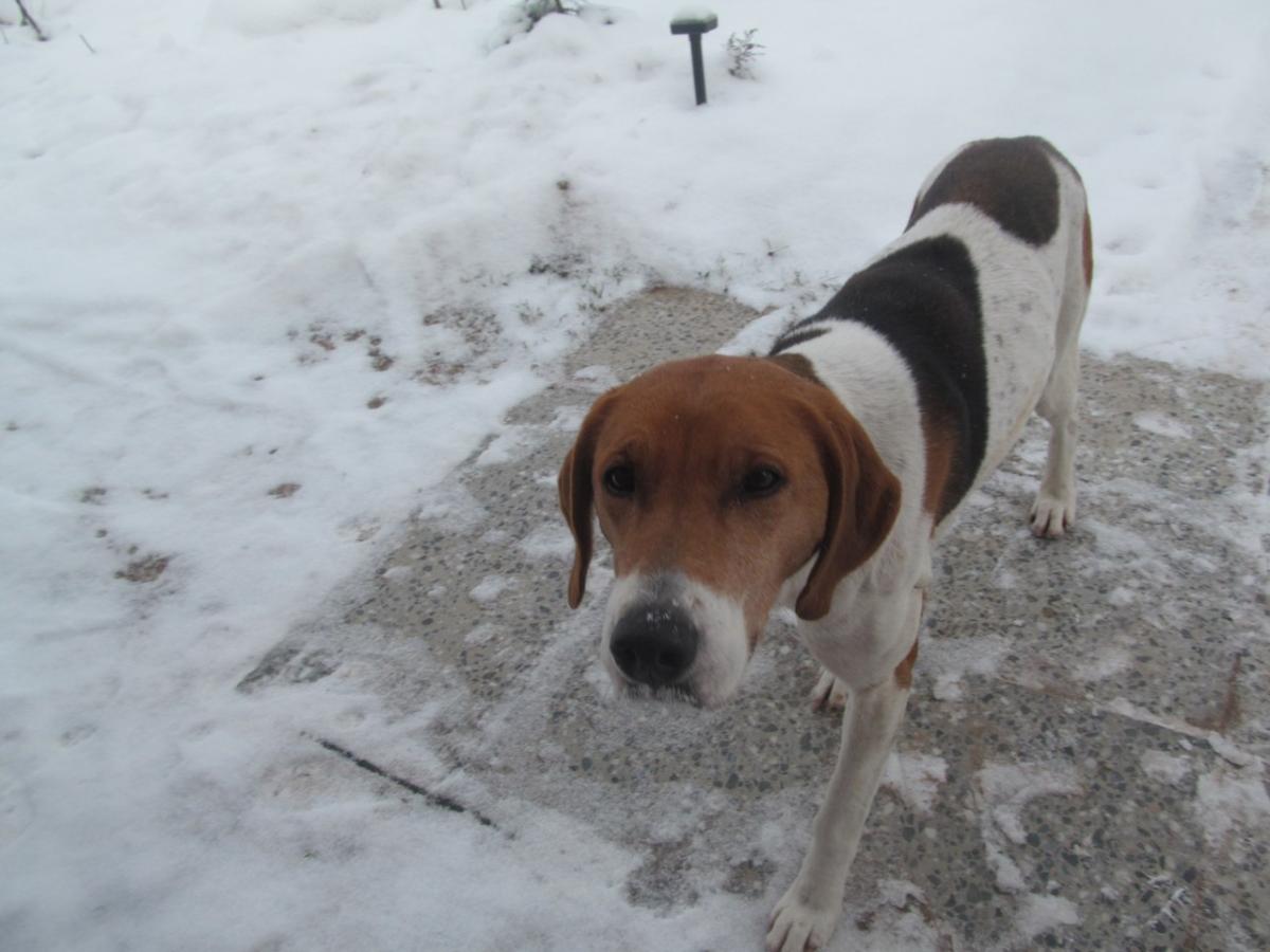 У нас потеряшка.Во время прогулки к нам присоединилась .Не могли бросить в беде,взяли пока к себе.Видимо потеряли охотники,которые заглядывают к нам в деревню.Очень хочется найти хозяев.К сожалению Масяня(кошечка наша) не желает видеть ее в доме,пришлось бедную гостью покормить и постелить ей в коридоре,а там не жарко.Ау хозяева,мы в деревне Выбор,Лужский район.Звоните по т 8-981-686-25-79