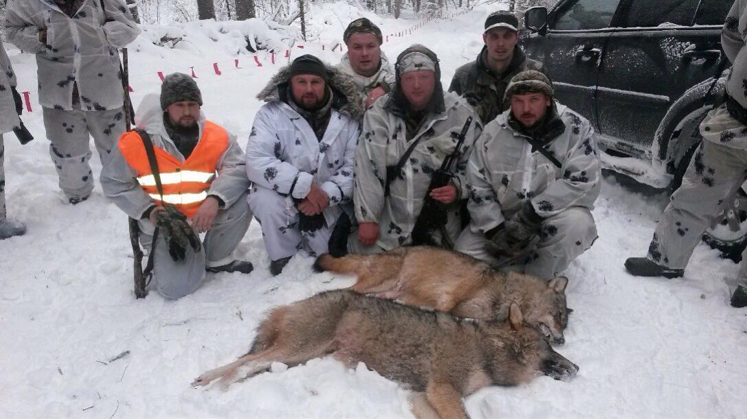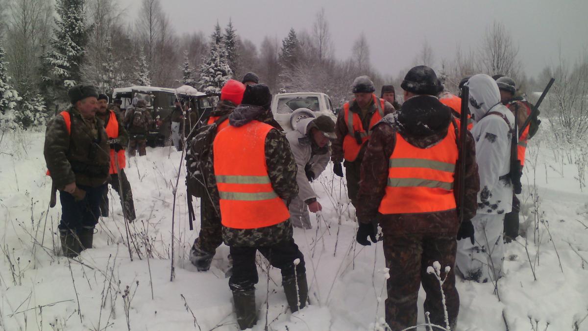 Собрались… Один серый проскочил между загонщиков перед самой стрелковой… наш подранок ушёл в ельник… идём смотреть по следу – идёт галопом, кровит мал-мало …