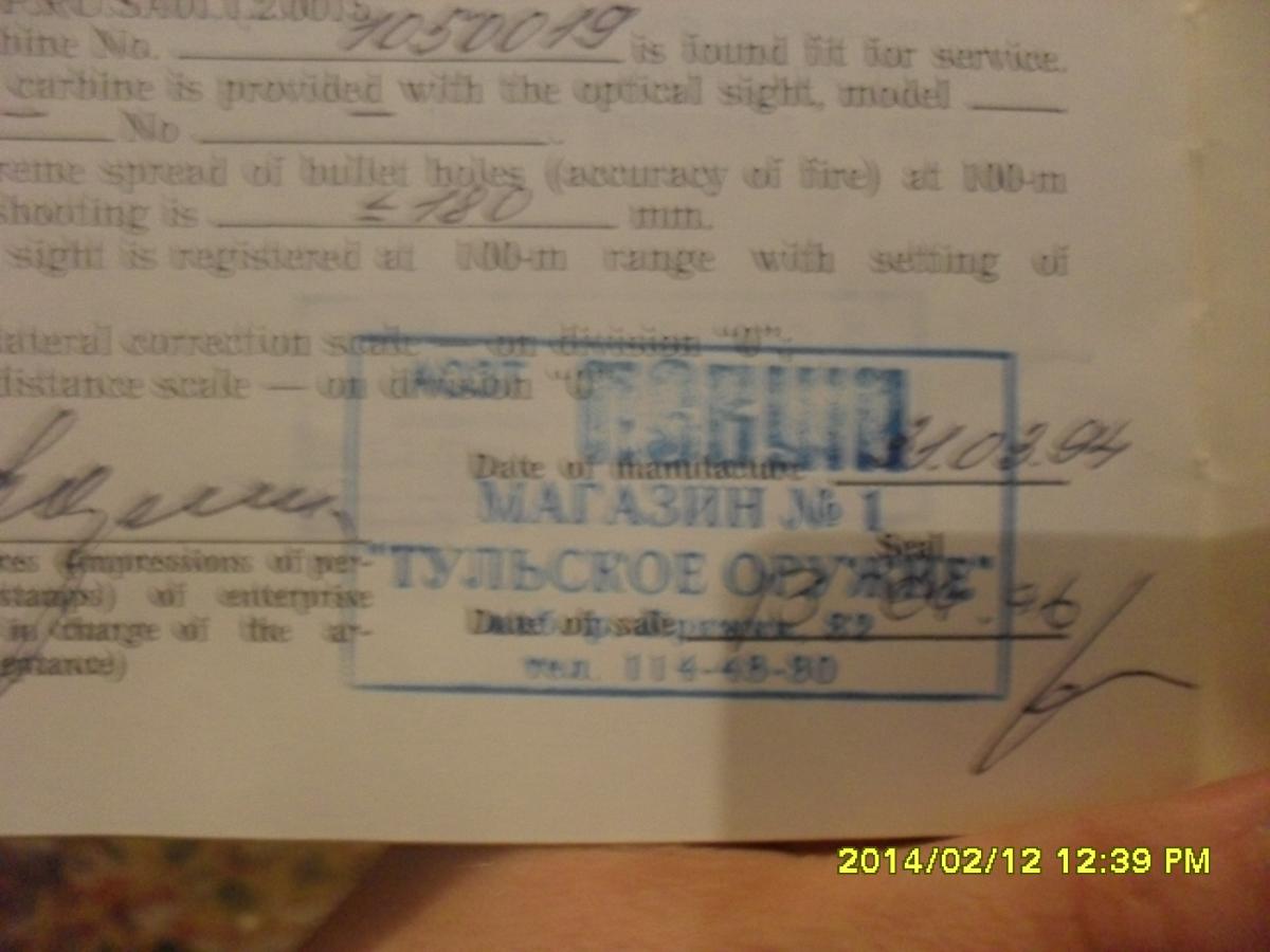 Вопрос в следующем: пройдёт-ли отстрел этого карабина перед продажей и не "завернут" его как несоответствующий действующим крим.требованиям???