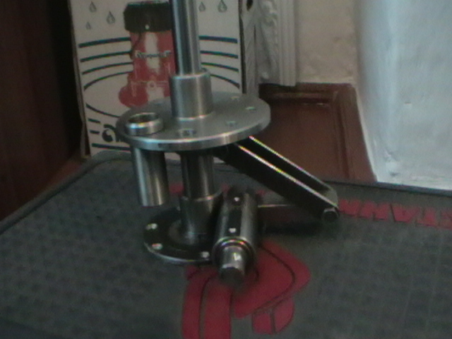 это основа. Сделана из стального блина и 2х деталей. Все сварено электросваркой и обработано на токарном станке. запрессованы бронзовые втулки и развернуты разверткой на 20мм.