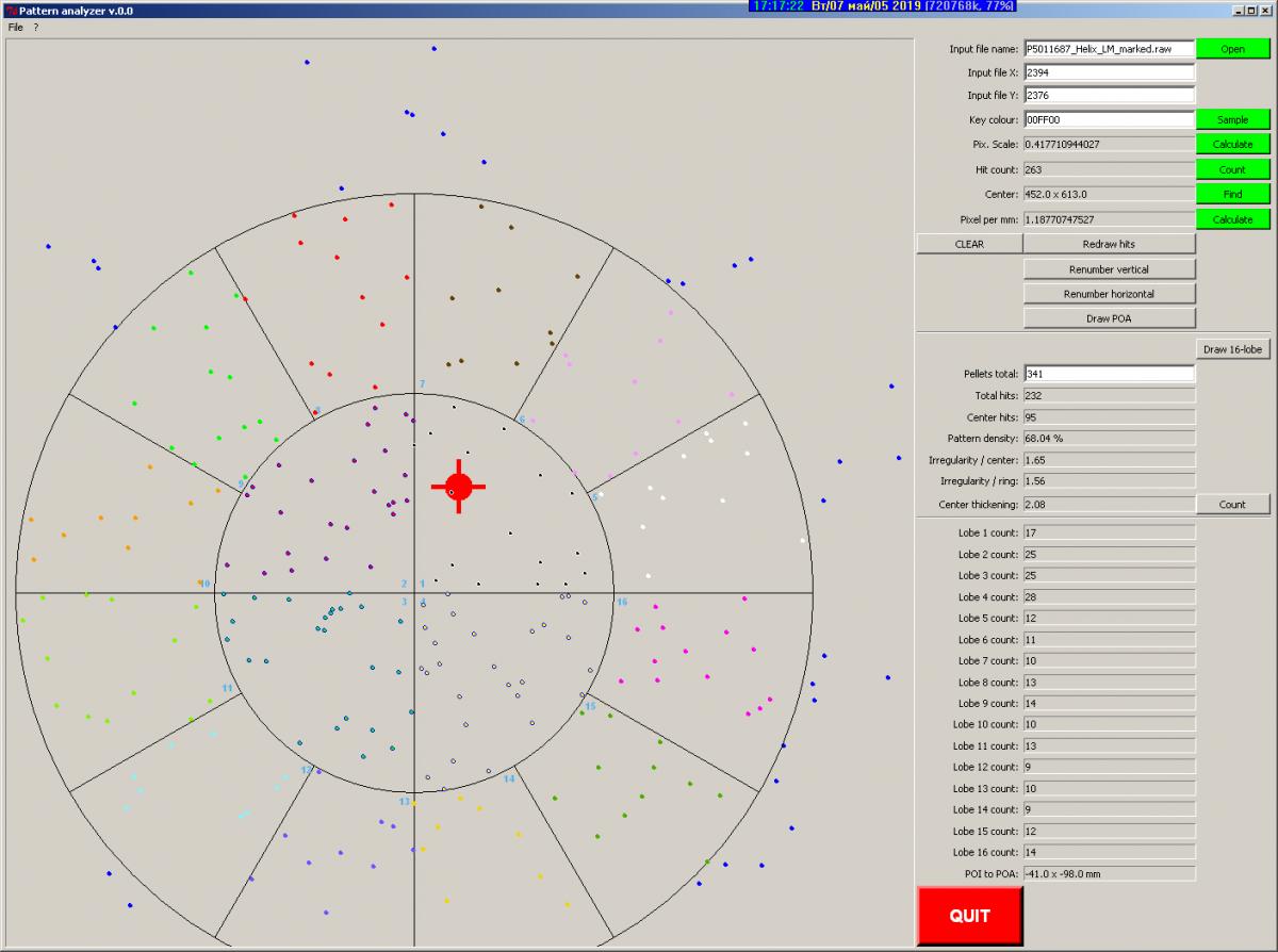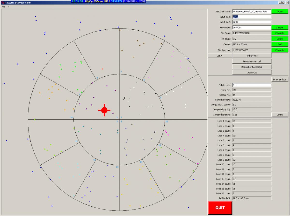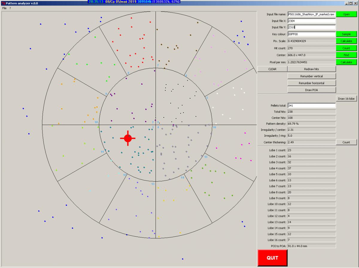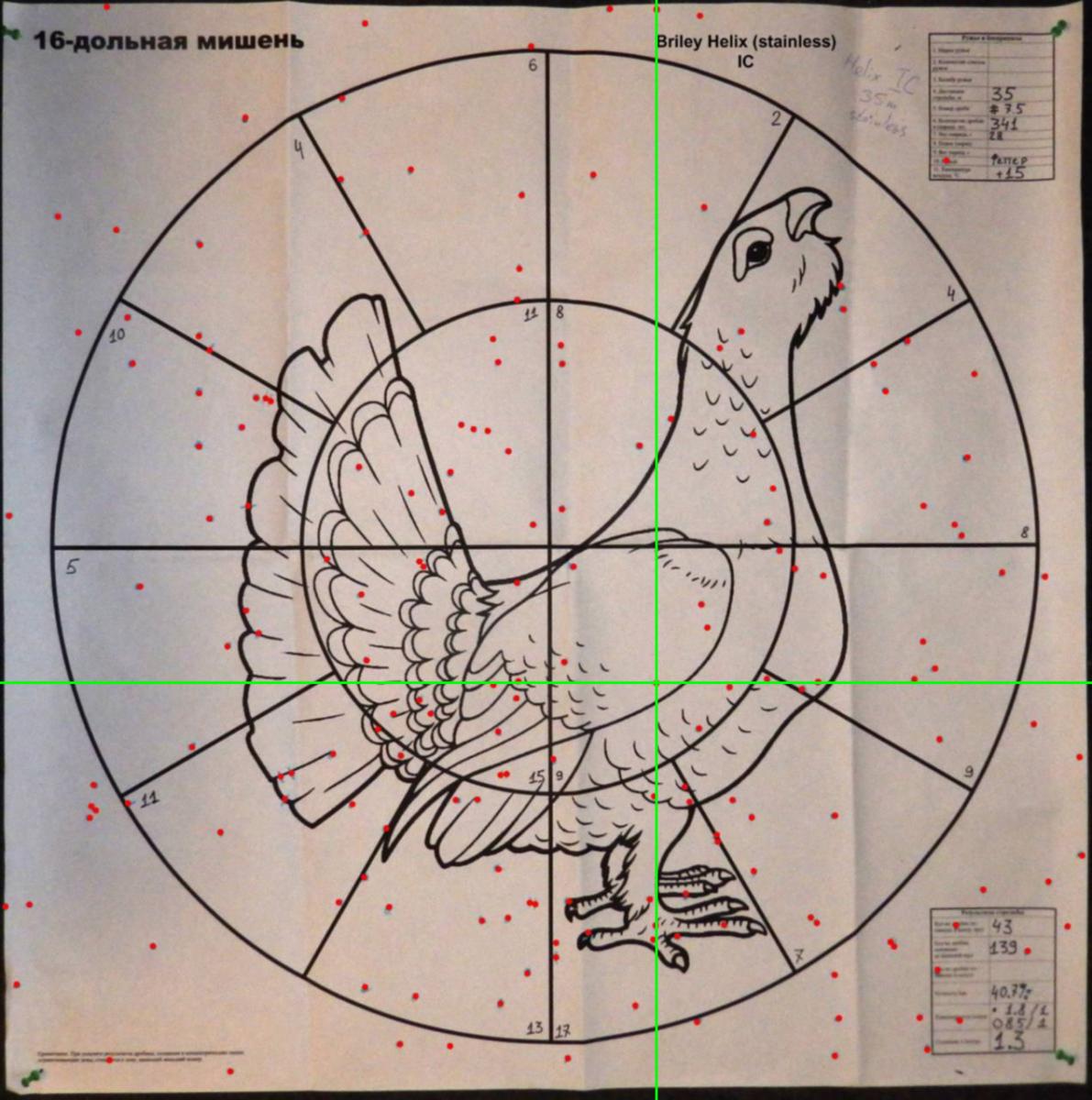 Далее необходимо решить вопрос масштабного коэффициента для того, чтобы уметь переходить от пикселов к метрам. Перейдя к метрам - можно будет нанести трафарет 16- или 100- дольной мишени.