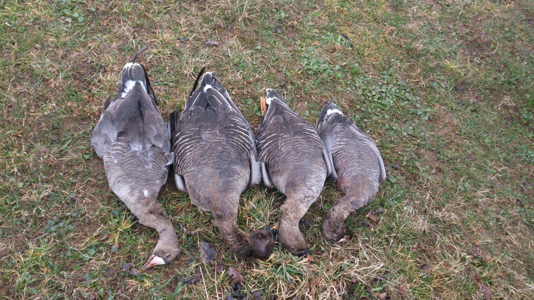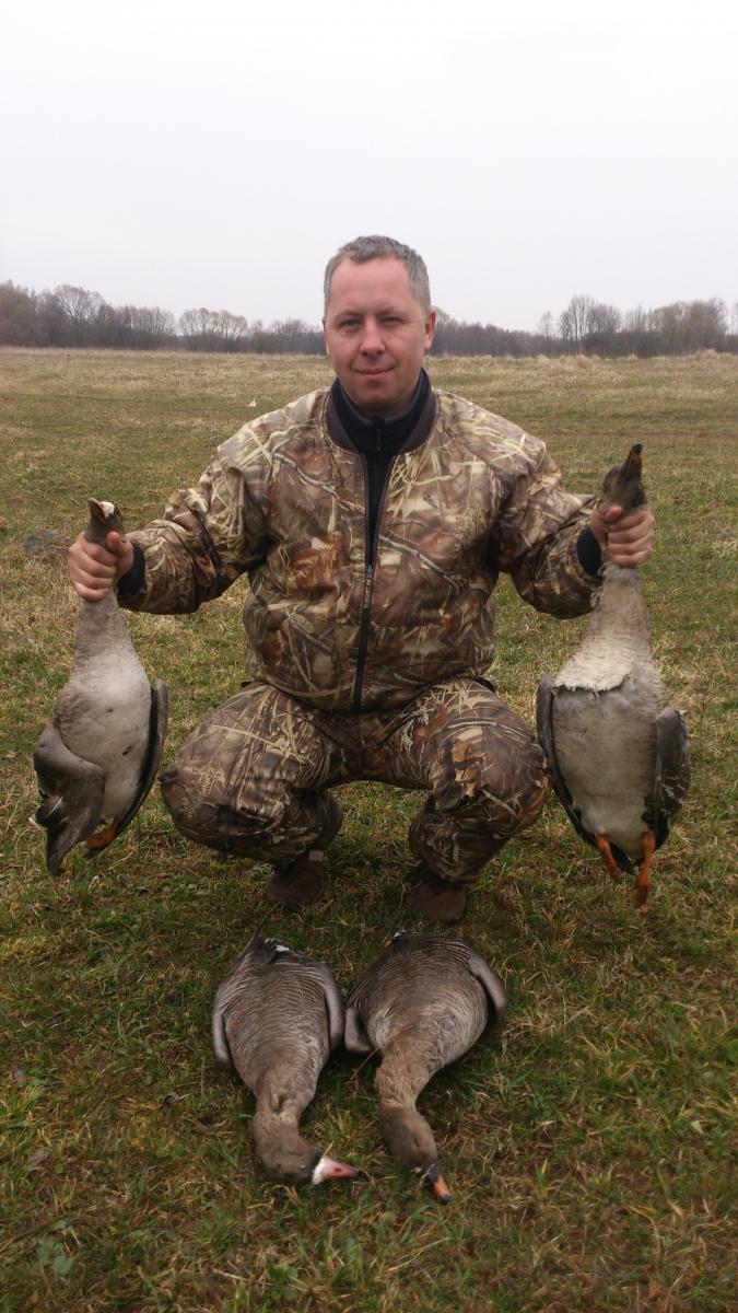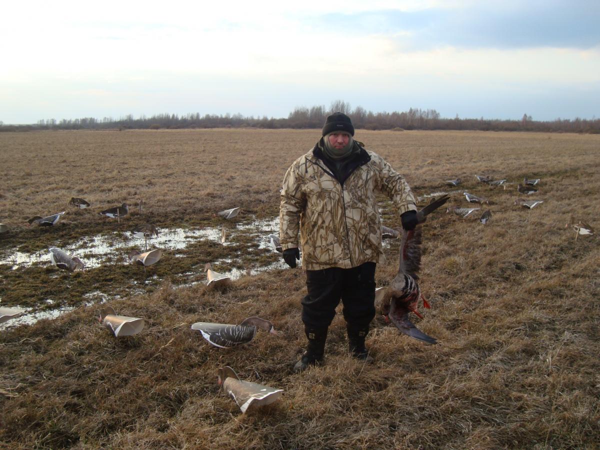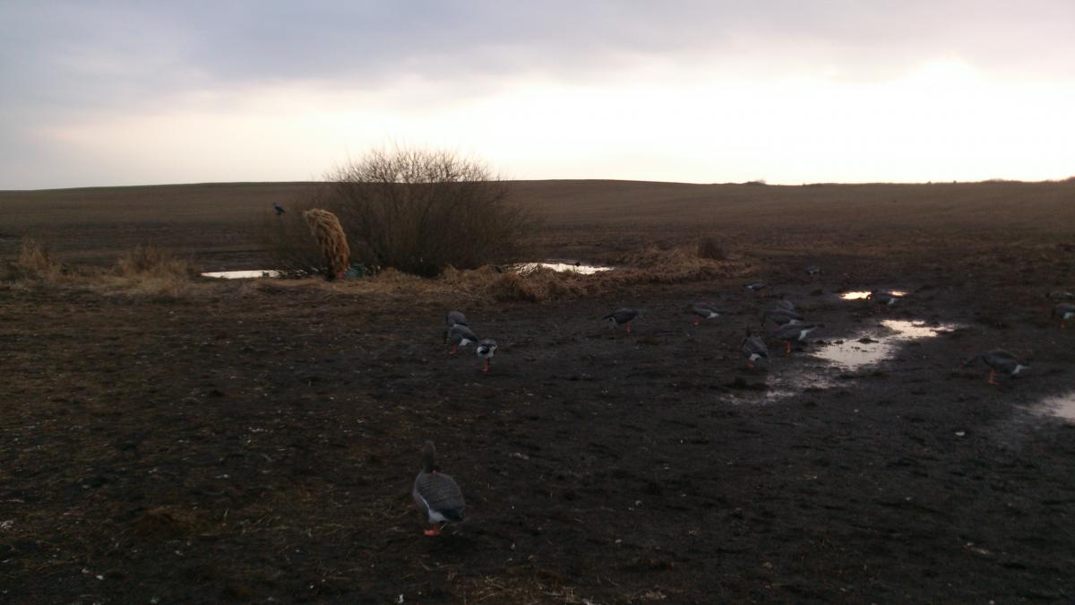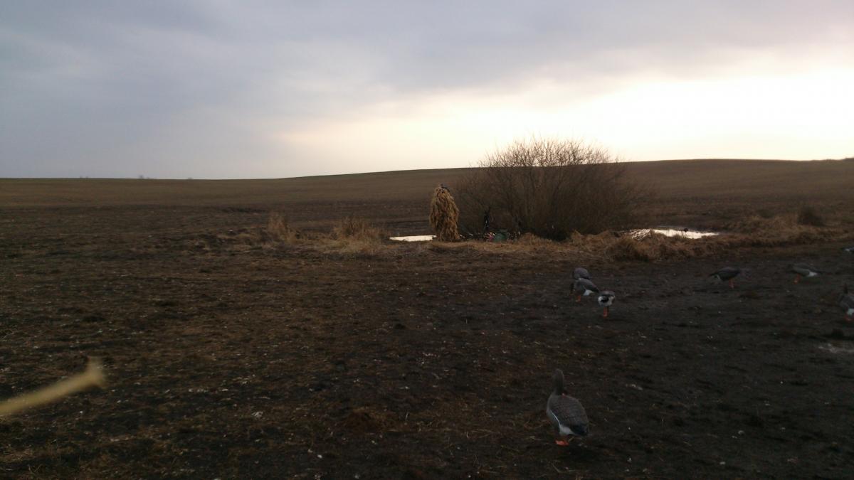 Короче, пролетел по словам егеря, гусь.Но , утром были налеты,с 8 утра до 12, я так понимаю с других полей согнали, гусь в основном шел высоко, осторожно.Но часть, все же, была менее осторожна, что и позволило нам удачно поохотиться!