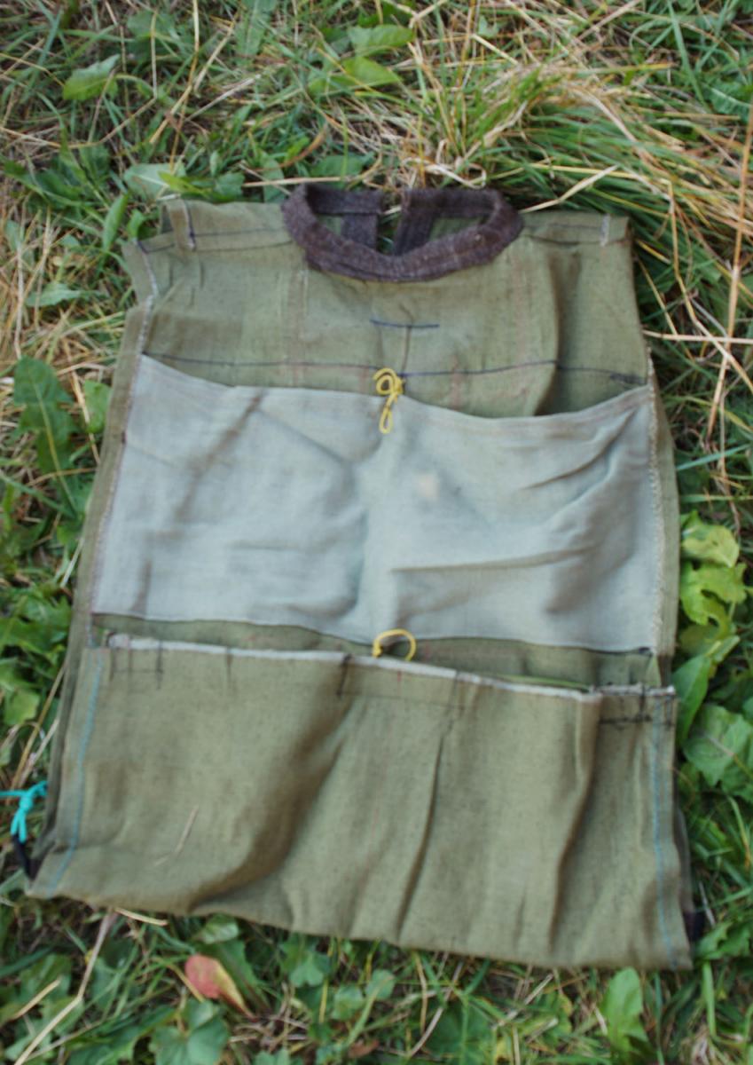 - карманы я делаю в два ряда. задний верхний - не разделенным, для запасной одежды, тента, капюшона и т.д. Нижний, как и все остальные лучше разделить. В нижних более тяжелые и объемные вещи - котелок, еда, добыча (как правило - птица и мелкие животные).