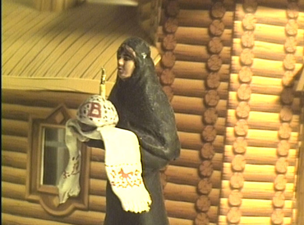 Еслиб в тулупчике, да с курковочкой, иль ещё лучше с рогатинкой,- это былоб ближе и роднее... Это так, мои фантазии.