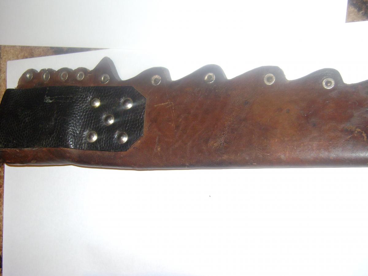 Сам делаю немного по другому из цельного куска кожи. Размачиваю его в горячей воде, складываю, зажимаю между двух досок. Туда где будет впоследствии рукоять забиваю оправку деревянную по размеру рукояти.