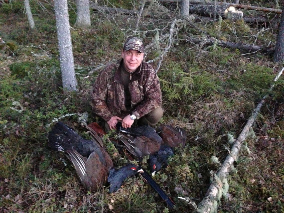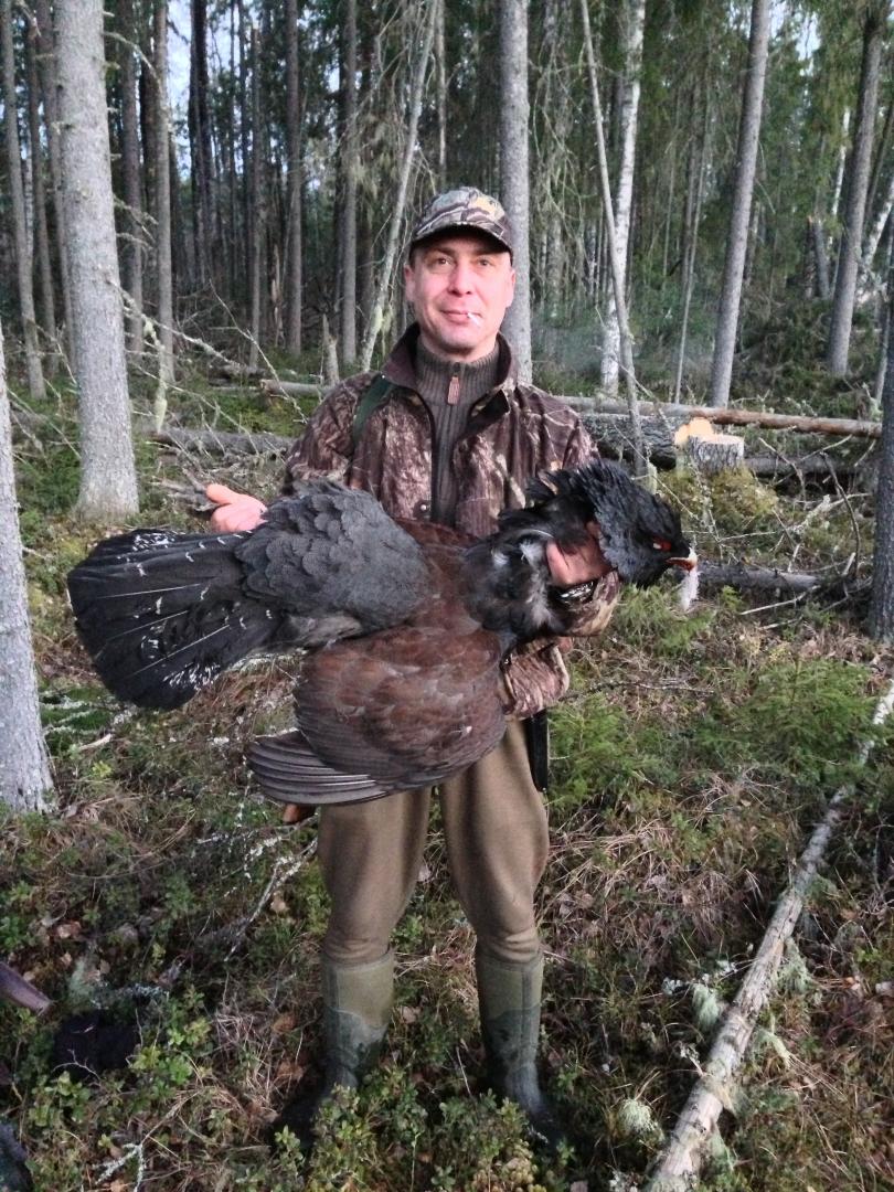 И под песню лес разорвал грохот выстрела и огромная птица кувыркаясь падает под сосну. Я кидаюсь к своей добыче, довольный, даже не описать. 4-55. Оборачиваюсь, друг мне показывает кулак. Я , конечно, понял свою ошибку, ведь охота ещё не закончилась, нужно закрыть вторую лицензию. Я сел прямо на мох и затих. Через минут 7 раздался выстрел. ВСЁ. Мы потихоньку вышли на край леса, присели, закурили. Меня так колбасило, руки тряслись, причём когда подходили, когда стрелял - никакого мандража не было.
