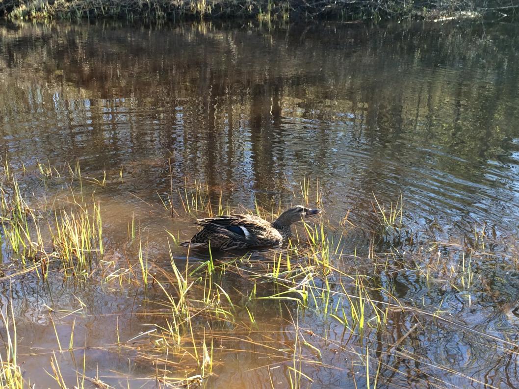 В удивление утка принялась кормиться не издав не единого звука, ну мы подумали может покормиться потом начнет зазывать, не тут то было, то кормиться, то чиститься молча
